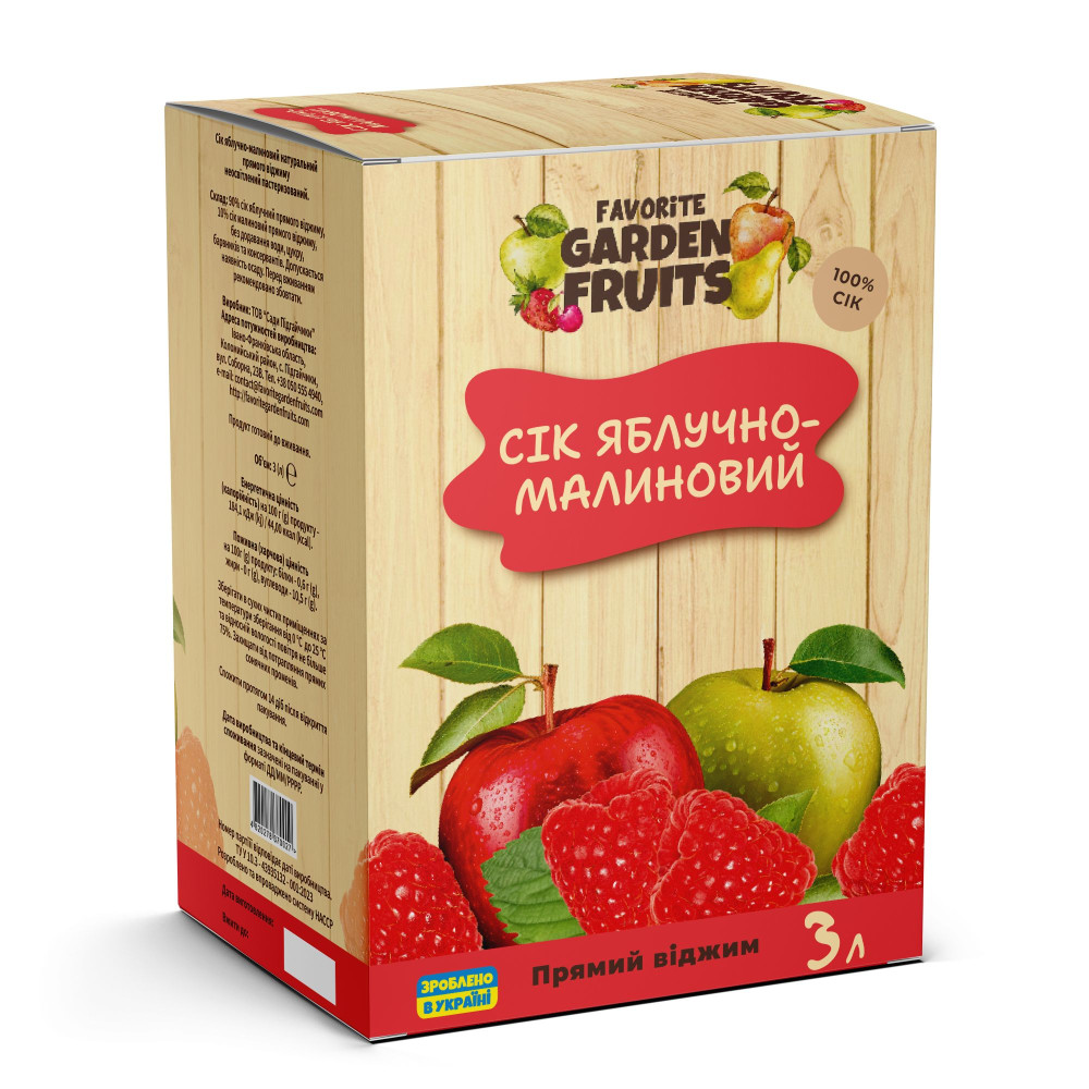 Склад: 90% сік яблучний прямого віджиму, 10% сік малиновий прямого віджиму
