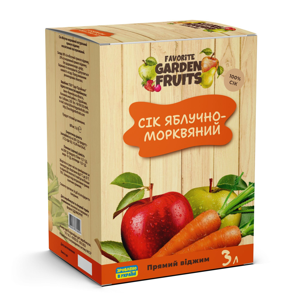 Склад: 80% сік яблучний прямого віджиму, 20% сік морквяний прямого віджиму