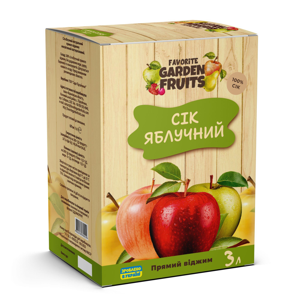 Склад: 100% сік яблучний прямого віджиму